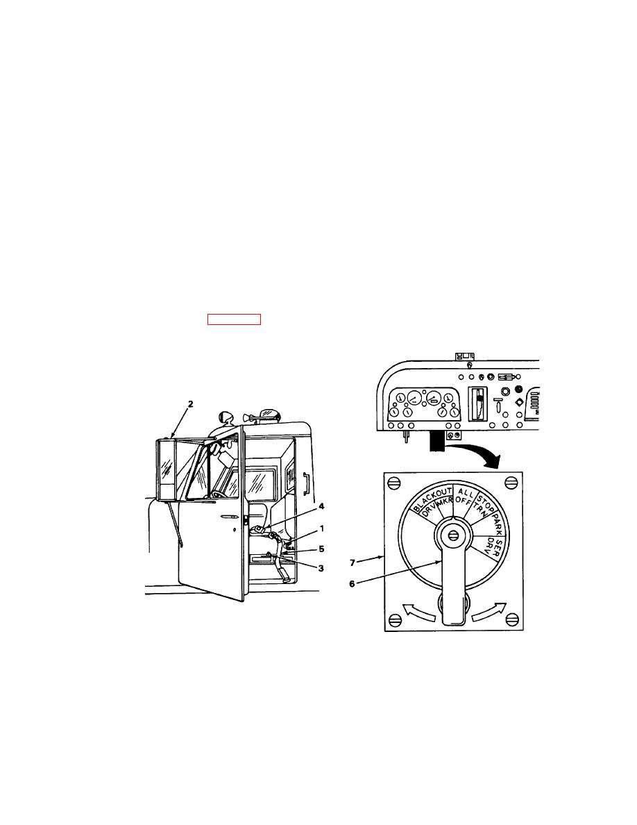 Move the master selector control handle (6) on the switch (7) to the lighting and driving