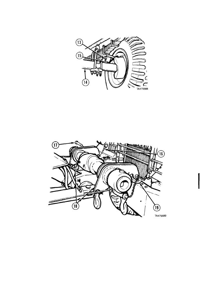 (15) Remove two adapters (18) from tow eyes (19) on disabled vehicle.