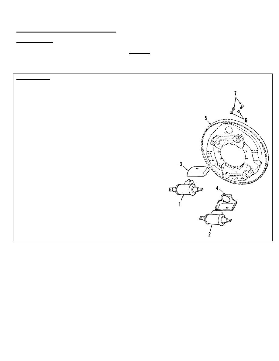 Remove wheel cylinder (1) or (2). Remove spark shield (3) or (4) from cylinder.