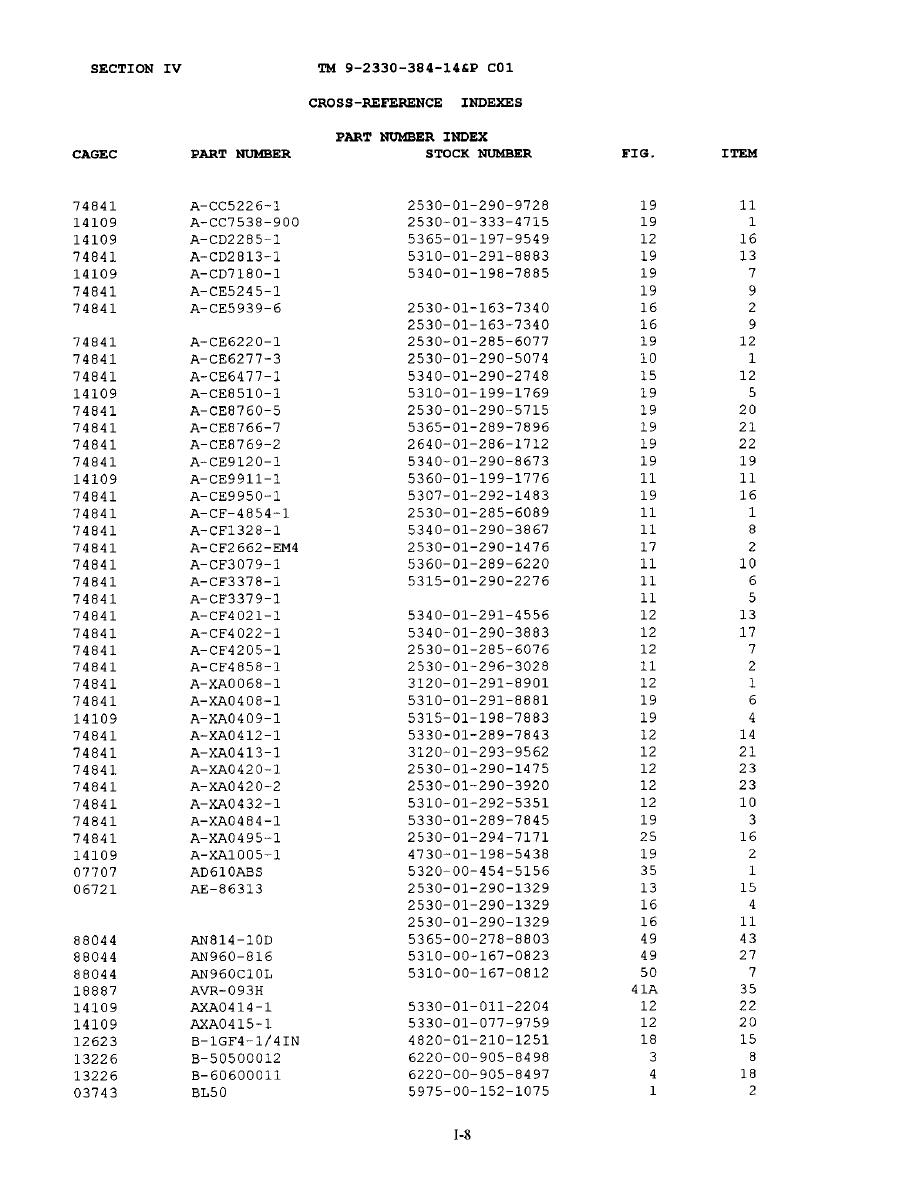 PART NUMBER INDEX - TM-9-2330-384-14-P0607