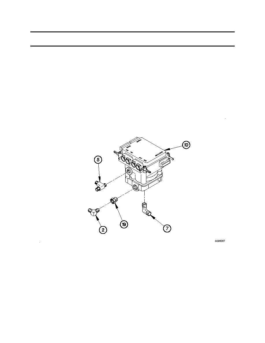 12. Remove 90-degree fitting (7) from ABS ECU valve (10).