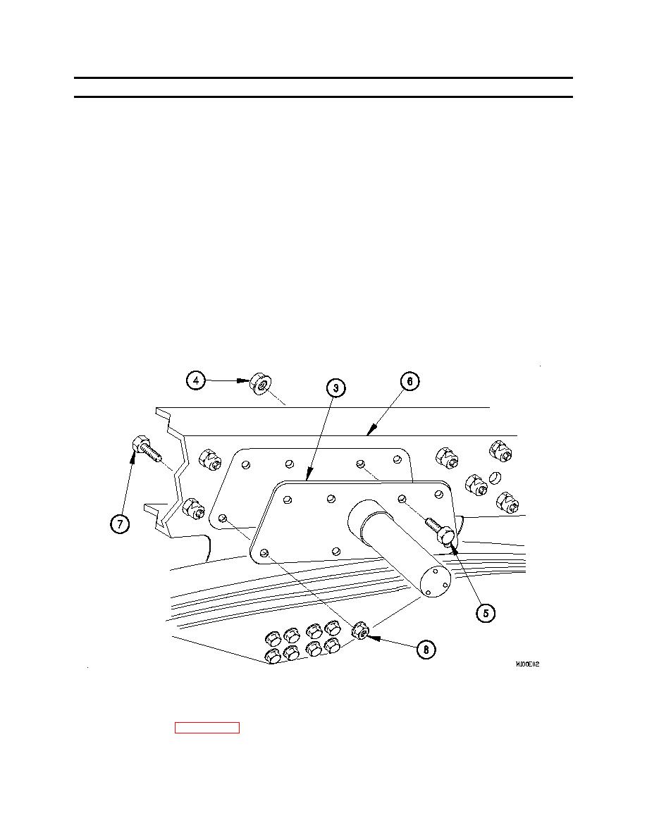 Position axle bogie shaft (3) on frame rail (6) with four bolts (5) and self-locking nuts (4).