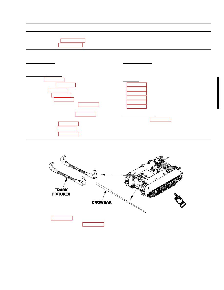 Unstow crowbar and track fixtures from rear top deck. Remove industrial goggles and hammer from tool bag.