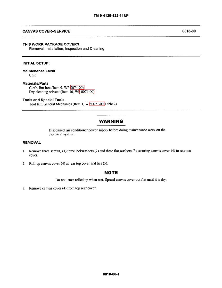 TM-9-4120-422-14-P Air Conditioner Horizontal Compact 9 000 BTU/HR 115 VOLT Single Phase 50/60 Hertz Part No. S8450-9KC-1H (NSN 4120-01-456-6954) Manual