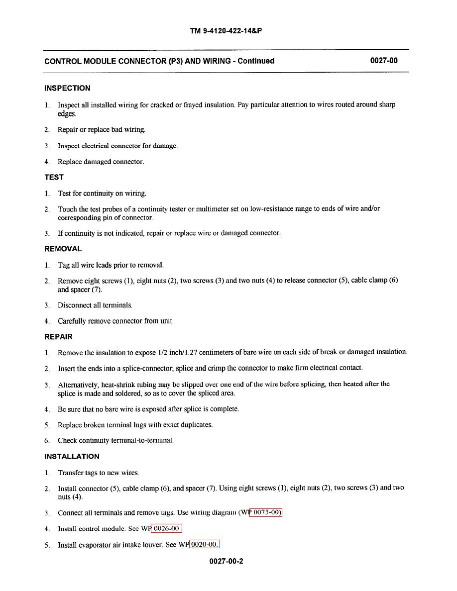 CONTROL MODULE CONNECTOR (P3) AND WIRING